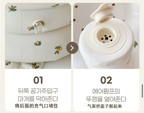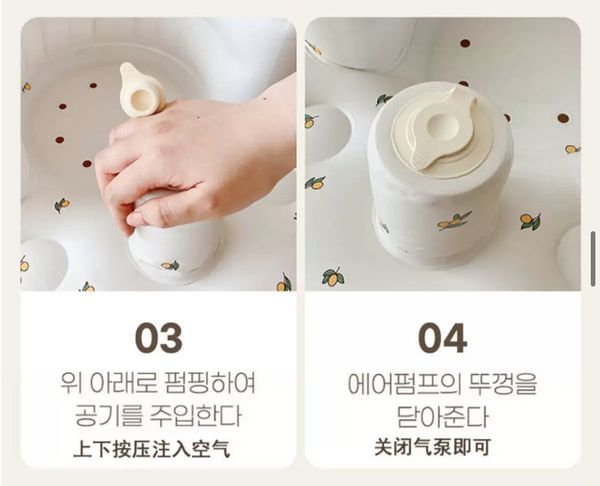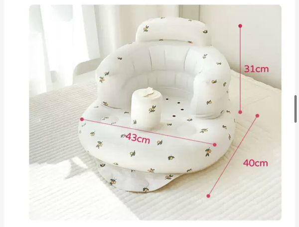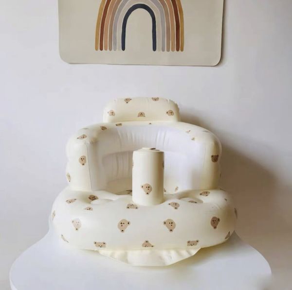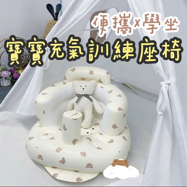 韓國PVC充氣學坐椅神器充氣座椅嬰兒按壓泵充氣沙發座椅便攜外帶外出野餐露營(熊頭)