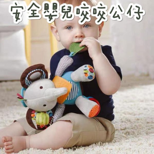 寶寶嬰兒公仔搖鈴100日禮物初生伴偶安全物料無螢火劑可洗防菌咬咬巾bb車玩具咬咬公仔大象