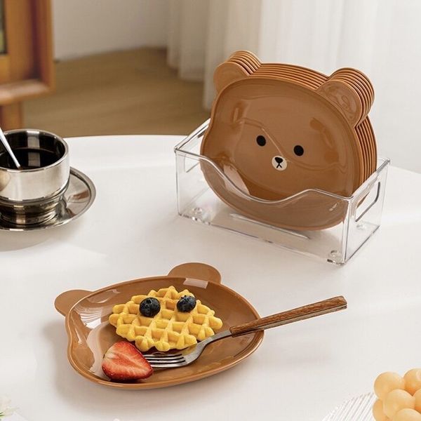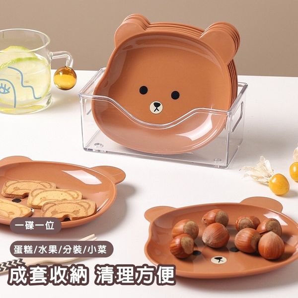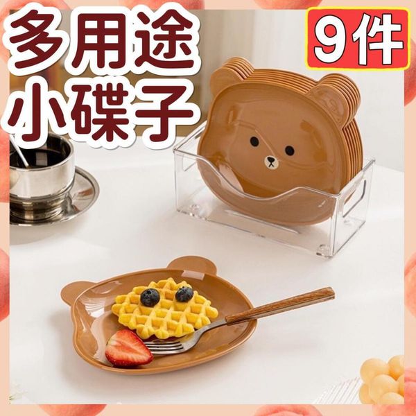 9件套 多用途小碟子 熊仔碟 小食碟擺碟 餐具 食用級材質 安全物料 可愛廚具家品 吐骨碟 卡通點心碟 裝飾碟 水果盤 水果碟 (棕色小熊/共9件套)