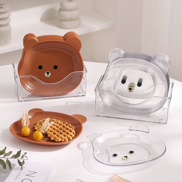 9件套 多用途小碟子 熊仔碟 小食碟擺碟 餐具 食用級材質 安全物料 可愛廚具家品 吐骨碟 卡通點心碟 裝飾碟 水果盤 水果碟 (棕色小熊/共9件套) 餐碟