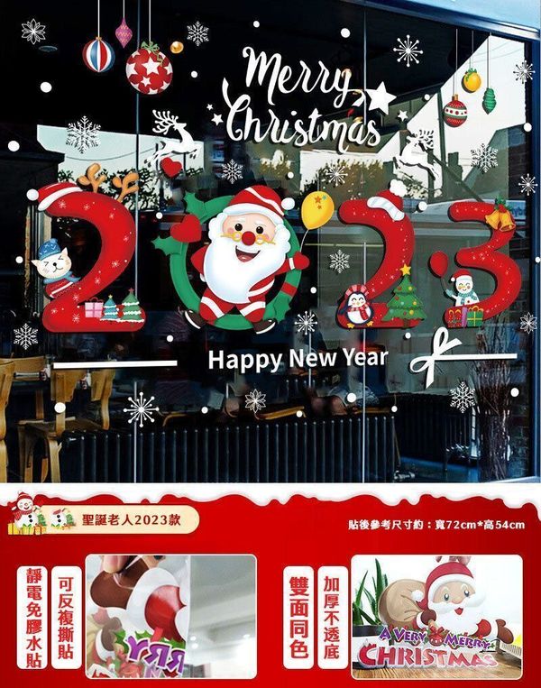 聖誕節靜電玻璃貼【Xmas2023款】聖誕節裝飾 氣氛 窗貼 牆貼 門貼 隨心佈置 發揮創意 屋企佈置 公司佈置 商場佈置 商店佈置 聚會 派對