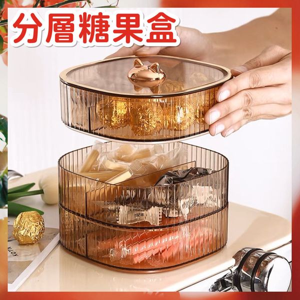 三層糖果盒 新年全盒 新年錢盒 輕奢創意乾果盤 食品級雙層帶蓋果盤 收納盒 家用堅果零食糖果盒 乾果盒 家用堅果零食糖果盒(三層香檳色)