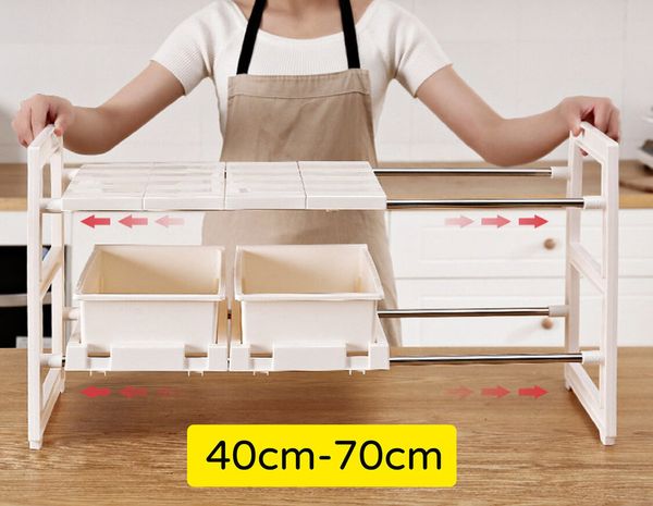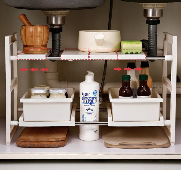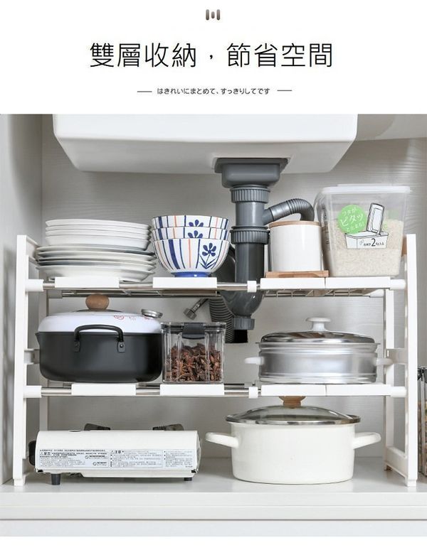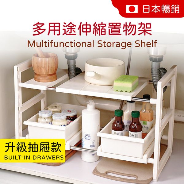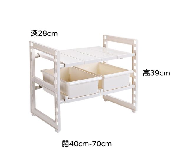 升級抽屜款 廚房收納可伸縮兩層多功能置物架 / 收納架/ 儲存架/鞋架 鋅盆底收纳架 洗手盤 層架