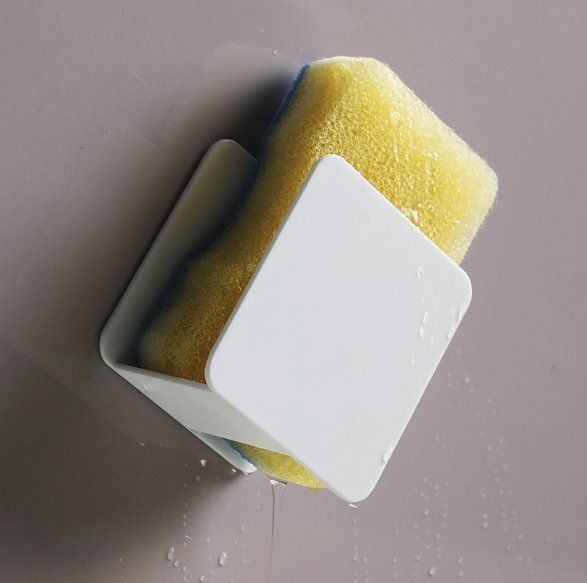 純白簡約百潔布洗碗方型盤架 海棉瀝水架 廚房無痕掛壁式海綿清潔球海棉架 清潔收納架 免打孔鋼絲球置物架 鋅盤隔