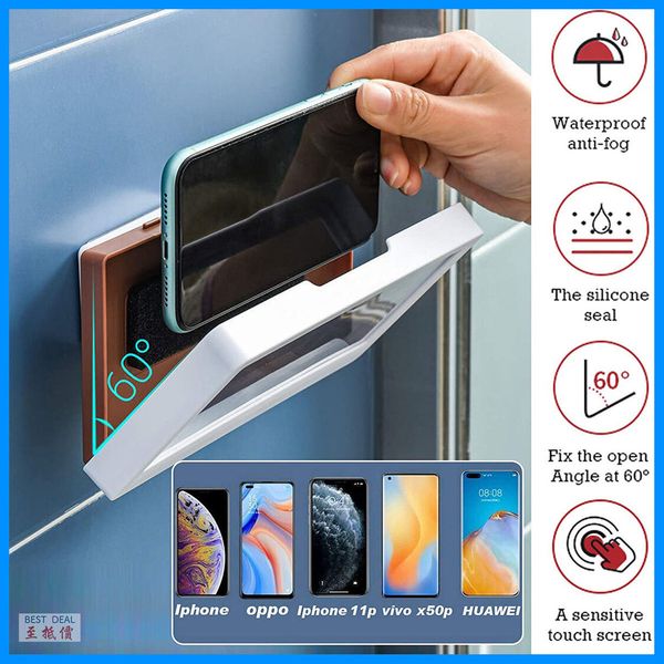 浴室電話架 電話防水盒 用於浴室 廚房 煲劇 浴室防水手機盒 手機架 創意浴室 壁掛防水 防水手機盒 壁掛手機架 免打孔