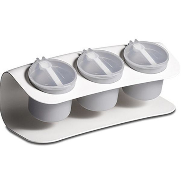 北歐簡約白3格調味盒連架(包匙) 托盤式廚房套裝調料罐附調味匙 三格鹽罐糖罐 味精盒 鷹粟粉 家用塑料佐料瓶 調料罐 調味品罐 無印風生活用品白色