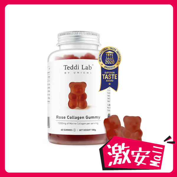 UNICHI Teddi Lab小熊玫瑰膠原蛋白軟糖(玫瑰花瓣味) 60粒 #高效補水#亮澤肌膚