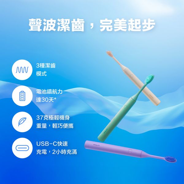 - 3種潔齒模式:溫和模式、清潔模式、亮白模式