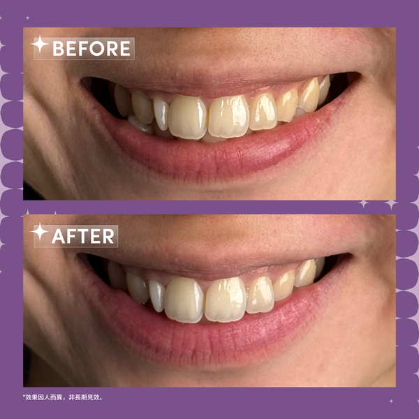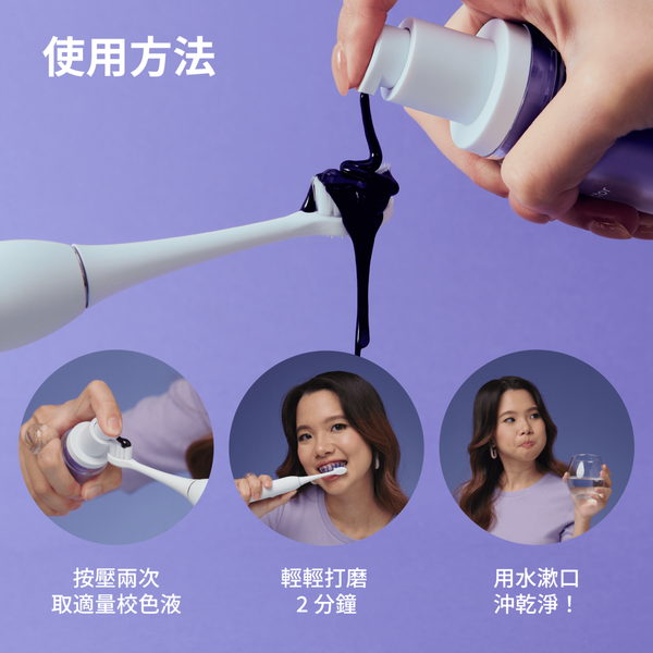 即時效果:紫色速效配方即時中和牙黃、污漬*,讓微笑更亮麗