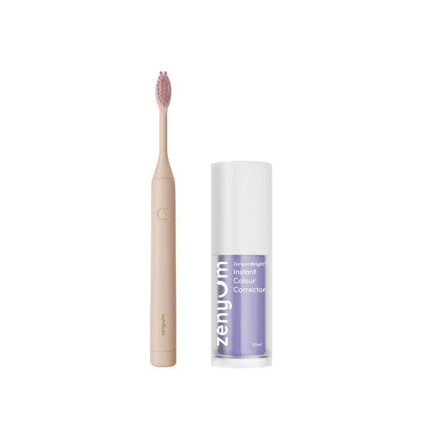 使用溫和潔淨刷頭及牙刷搭配 ZenyumBright™ 瞬白美齒校色液,讓刷牙體驗更溫和