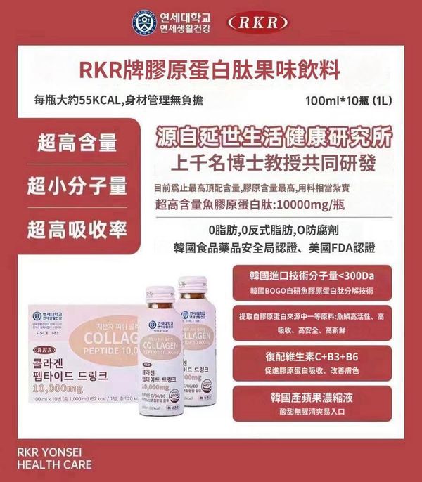 韓國 延世大學 RKR 骨膠原蛋白飲(10000mg )100ml x 10支/1盒