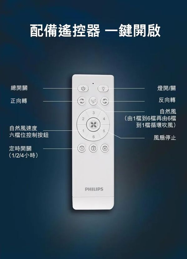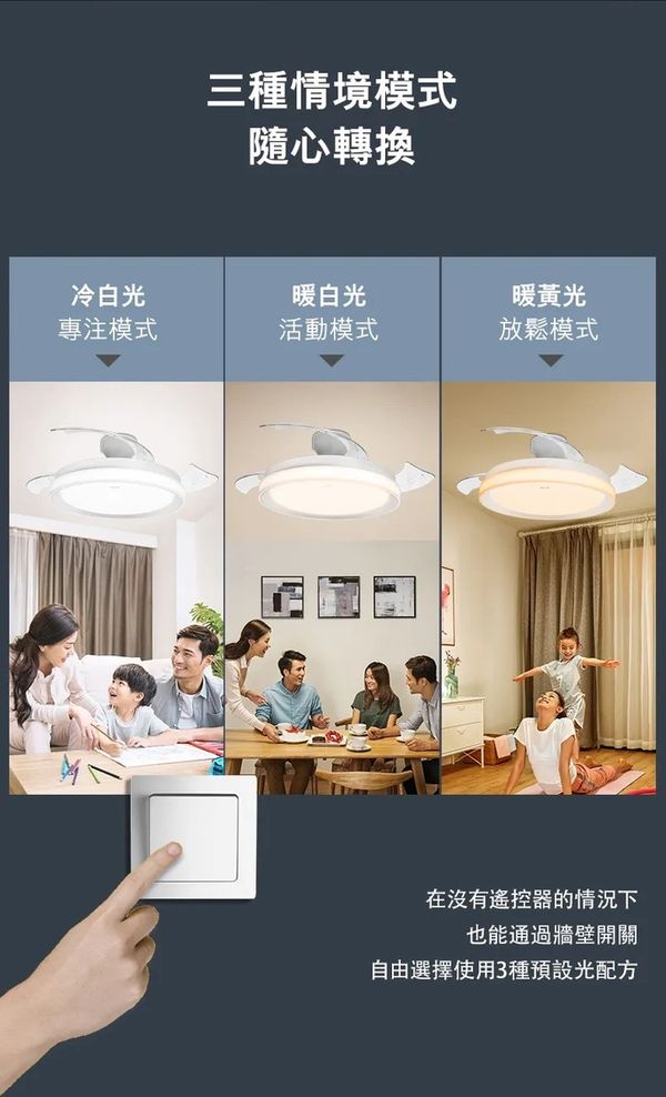 使用飛利浦 LED 風扇燈 (含遙控器),將量身打造的燈光與舒適的微風相結合,省電環保。這款燈包含可在不使用時隱藏起來的透明葉片及三種 SceneSwitch 照明設定,能在任何空間營造完美氣氛。