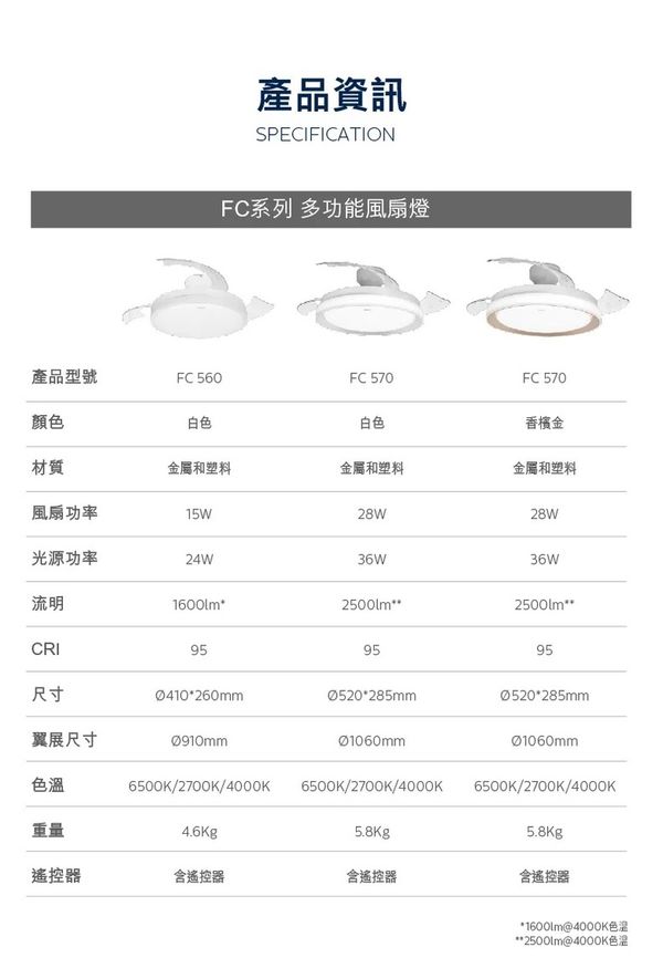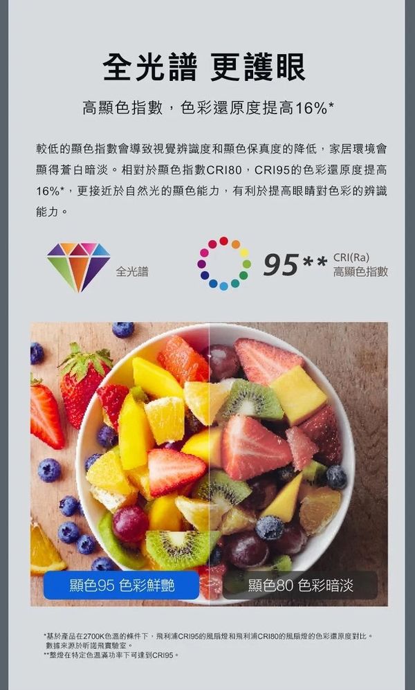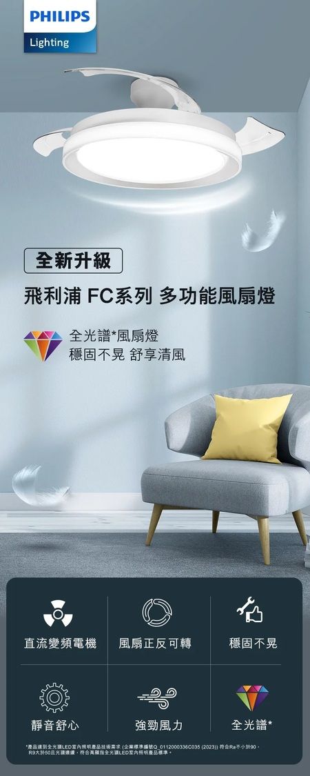 飛利浦 FC570 28W+36W G2 42" DC Motor Full Spectrum LED Ceiling Fan 飛利浦全光譜LED風扇燈 (第二代)(DC Motor摩打)Philips Lighting FC570 28W+36W Gen2 DC摩打風扇燈採用全光譜LED燈珠,CRI95 高顯色指數,高度還原物件真實顏色。