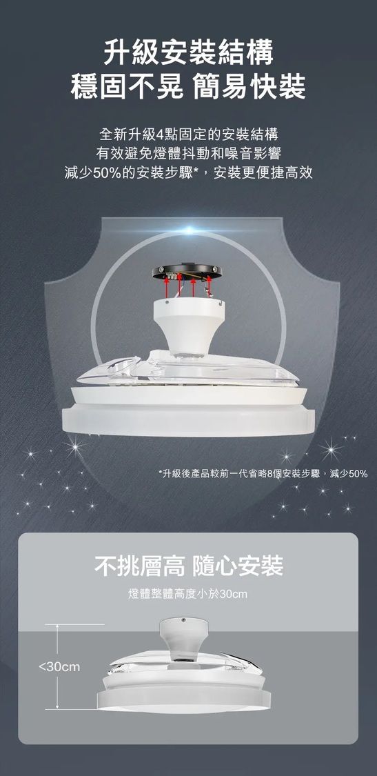 - 吸頂式底座設計適合低樓底家居安裝 (產品高度僅28.5cm)