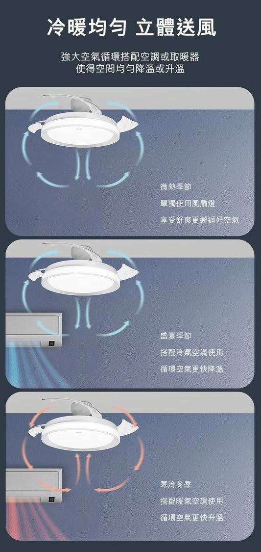 - 直流變頻,可正反轉吹風,夏天冬天皆宜