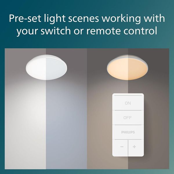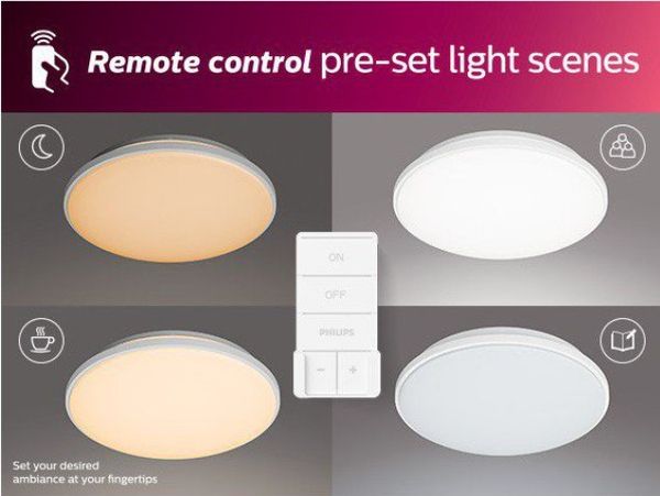 With just two clicks of the remote control, you can easily and conveniently customize the lighting settings of your Philips LED multi-function ceiling light. Comfortable, eye-friendly lighting. Choose the right lighting for your personal needs to create an ideal atmosphere.
