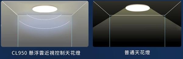 除了主光源以外,其他間接光源從背面照亮天花板的昏暗區域,可降低空間中明暗對比,抑制對比眩光,提供舒適的照明效果。