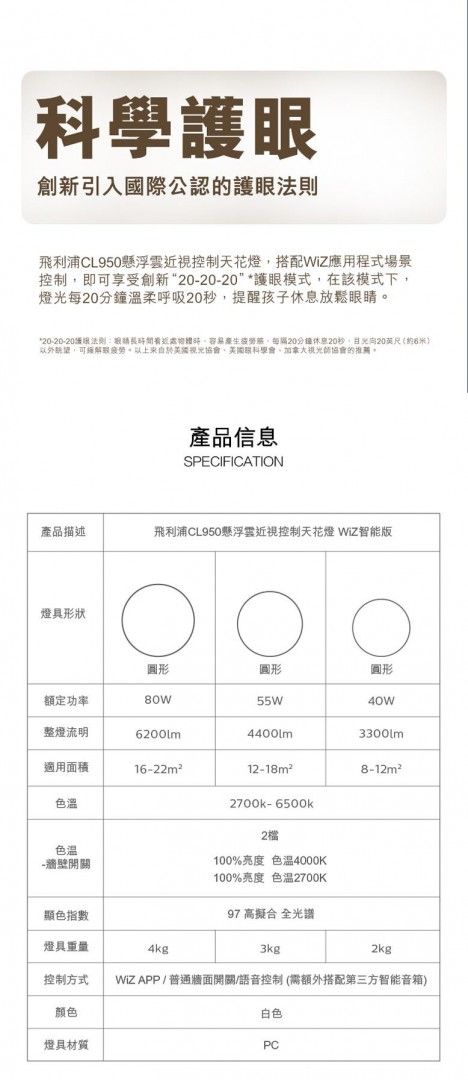 Philips Wiz CL950 40W Smart Ceiling Light 可調黃光白光智能天花燈