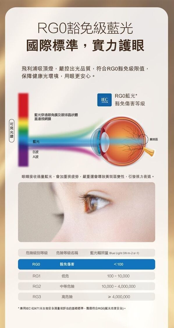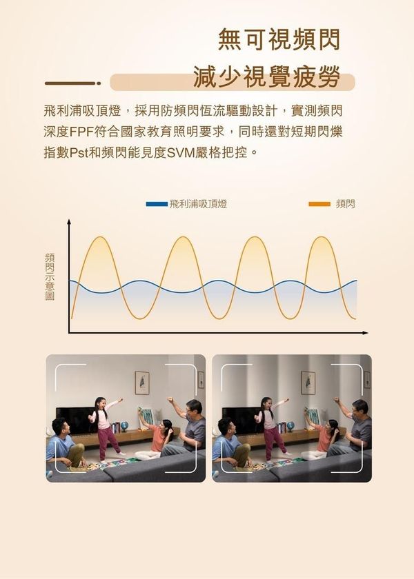 劣質光線可能會造成眼睛疲勞,我們大多待在室內,為居家空間使用正確照明在現代社會更顯重要。我們的產品符合最嚴格的測試標準,包括閃爍、頻閃、眩光、演色性和調光效果,可確保光線能滿足 EyeComfort 要求。飛利浦 LED 燈泡不僅提供舒適的照明,在使用壽命內都能維持性能,提供十多年一致的照明品質、輸出和色彩。改用對眼睛好的燈具,您的眼睛會感謝您。