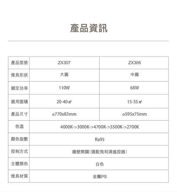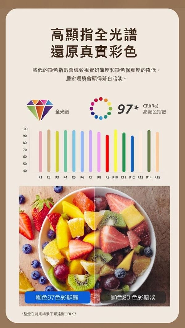• 升級全光譜LED,高品質顯色,顯色指數CRI 95