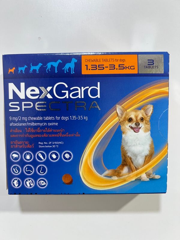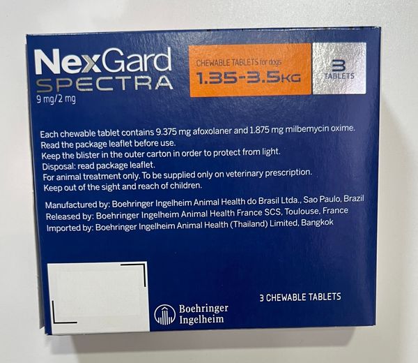買兩盒送INABA方便餵藥小食10g乙包 NexGard Spectra [平行進口 ](27年1月) 全能狗S (1.35-3.5kg 小型犬用) 杜蟲藥/杜蚤藥/心糸絲蟲藥 滅蝨 殺蟲