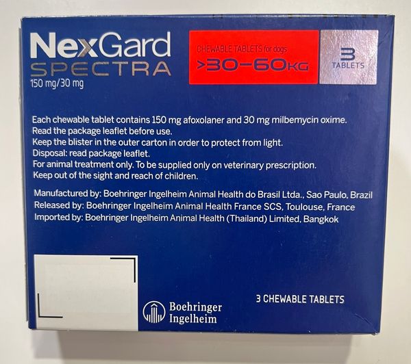 NexGard Spectra [平行進口](到期27年3月) 全能狗S (30-60kg 以下超大型犬用) 狗杜蟲 杜蚤 心絲蟲預防 防蝨 驅蟲