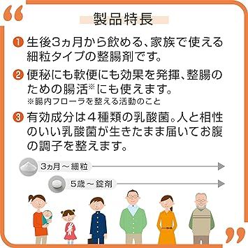 ビフィダム菌9mgロンガム菌9mgフェーカリス菌18mgアシドフィルス菌18mg添加物:トウモロコシデンプン、デキストリン、アメ粉、沈降炭酸カルシウム、フラクトオリゴ糖