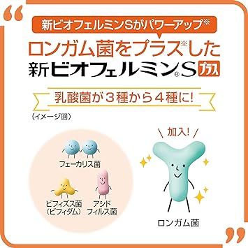 ●新ビオフェルミン®Sプラス細粒は、従来品(新ビオフェルミン®S細粒)に、新たにロンガム菌を配合した整腸薬です。