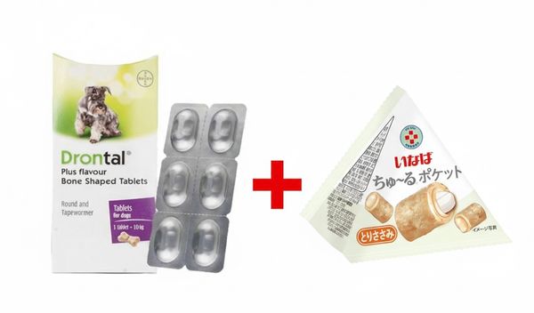 方便餵藥小食乙包 + 拜耳 BAYER Drontal (貨期29年1月) 犬用 骨型狗杜蟲藥 (10公斤/錠) (原排6粒裝) 犬杜蟲 殺蟲