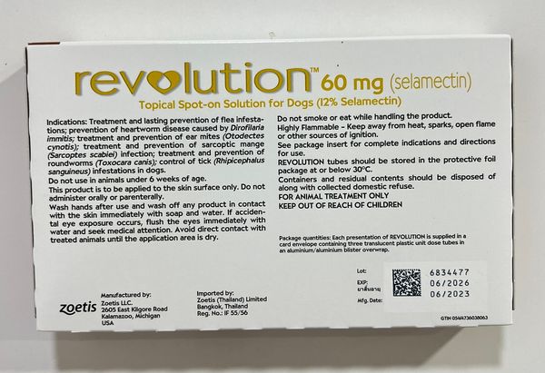 英文品名Revolution 12% (60mg)產品規格3劑/盒,適用5.1~10kg的犬注意事項須經獸醫師(佐)處方使用;產品詳細資訊請參見產品仿單使用方法將軟管頭蓋下壓,打開封口,置於犬頸後皮膚上,擠壓3~4次,同時拖曳軟管至藥劑擠完為止即可。