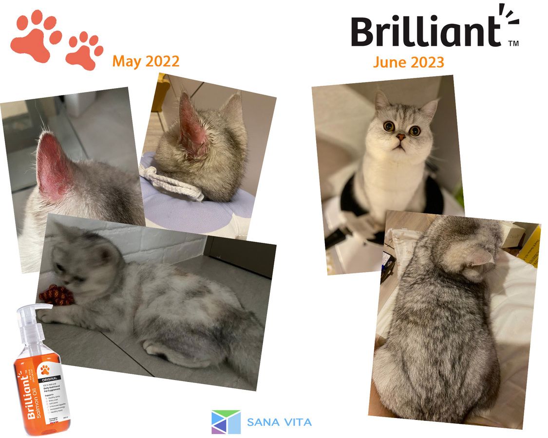 21種Omega脂肪酸:Hofseth 的專利技術確保從三文魚提取所有精華,包括 DHA、EPA 和 DPA。市面上的普遍只有奧米加 3/6/9,而Brilliant卻有21種脂肪酸,它們使您的寵物毛皮及關節柔軟,有助止癢,提升免疫力,並支持整體健康。