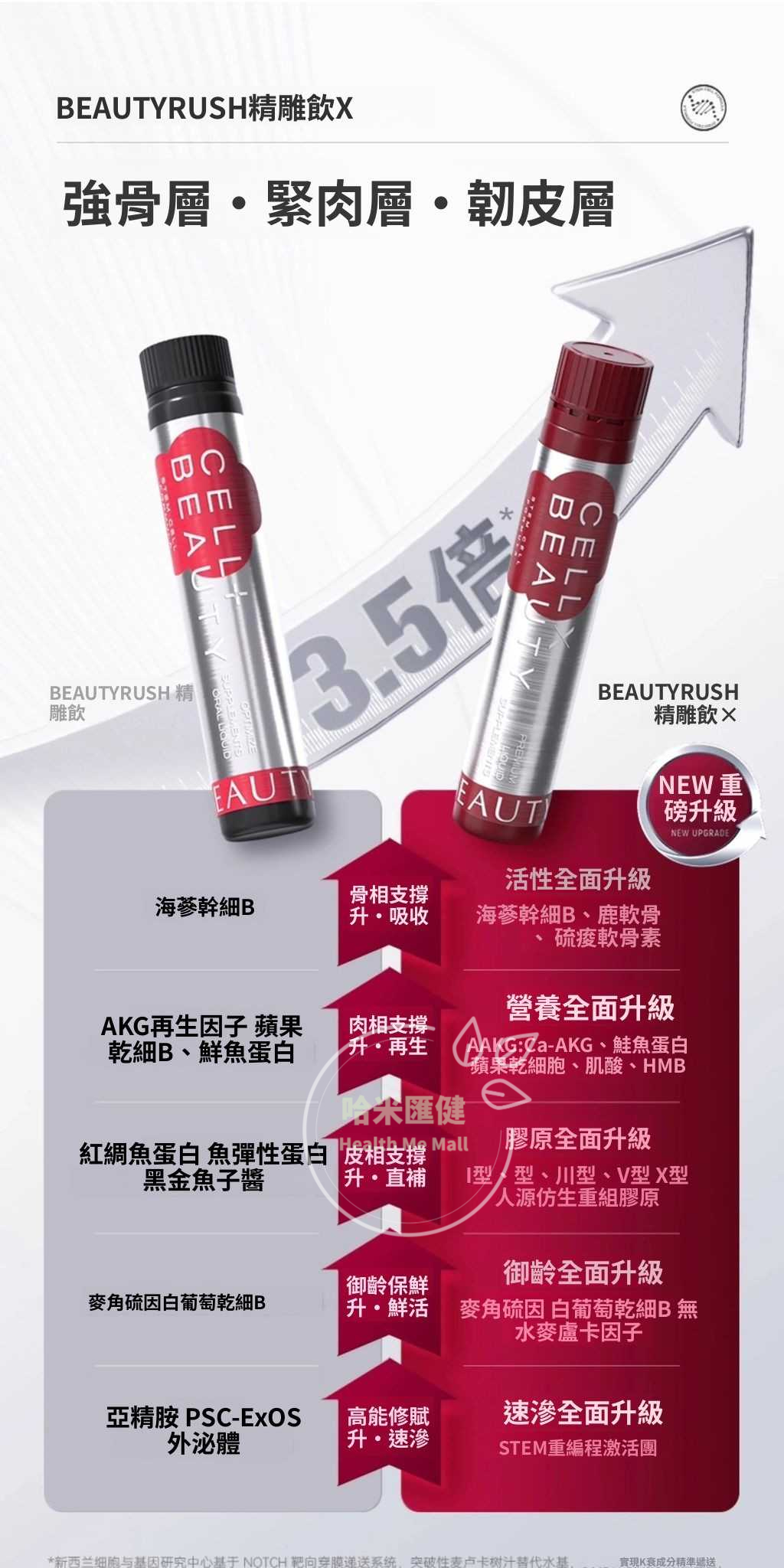 BEAUTY RUSH® 全新「精雕飲X」強勢升級是針對骨骼、肌膚和肌肉健康的綜合煥活配方。這款飲品經過科學配製,