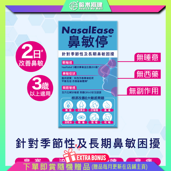 「鼻敏停」新一代配方,抗敏效果全面,更長效,無西藥,無副作用,無睡意,不含類固醇,不依賴