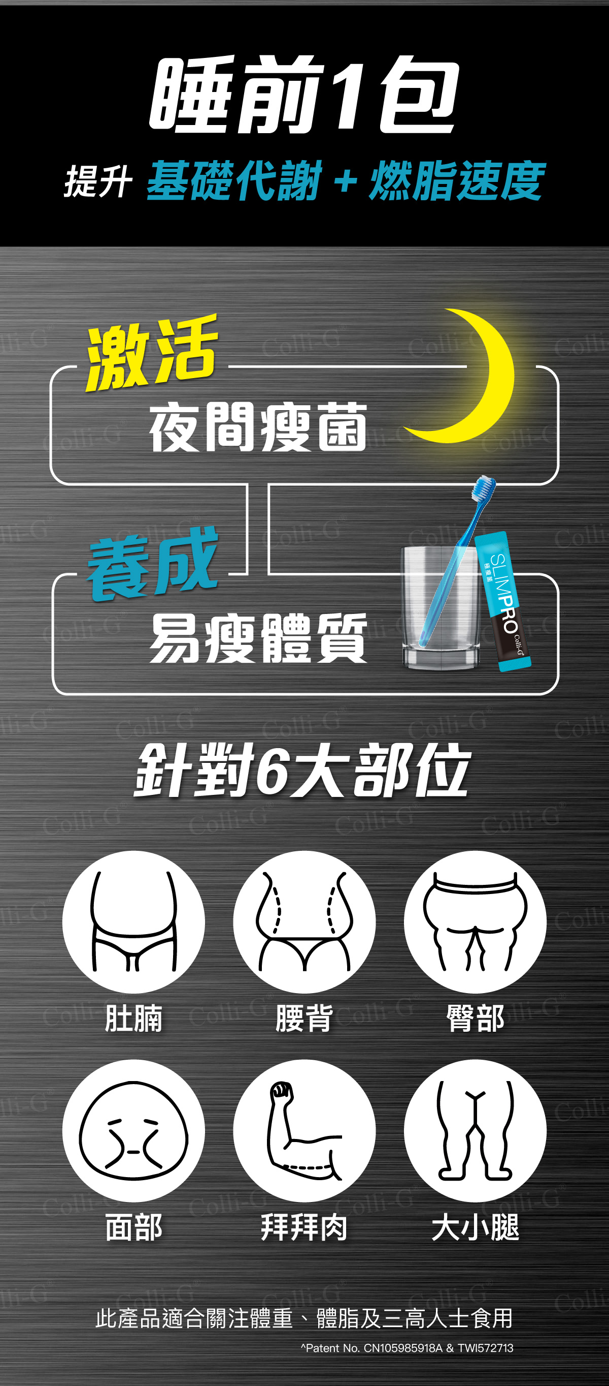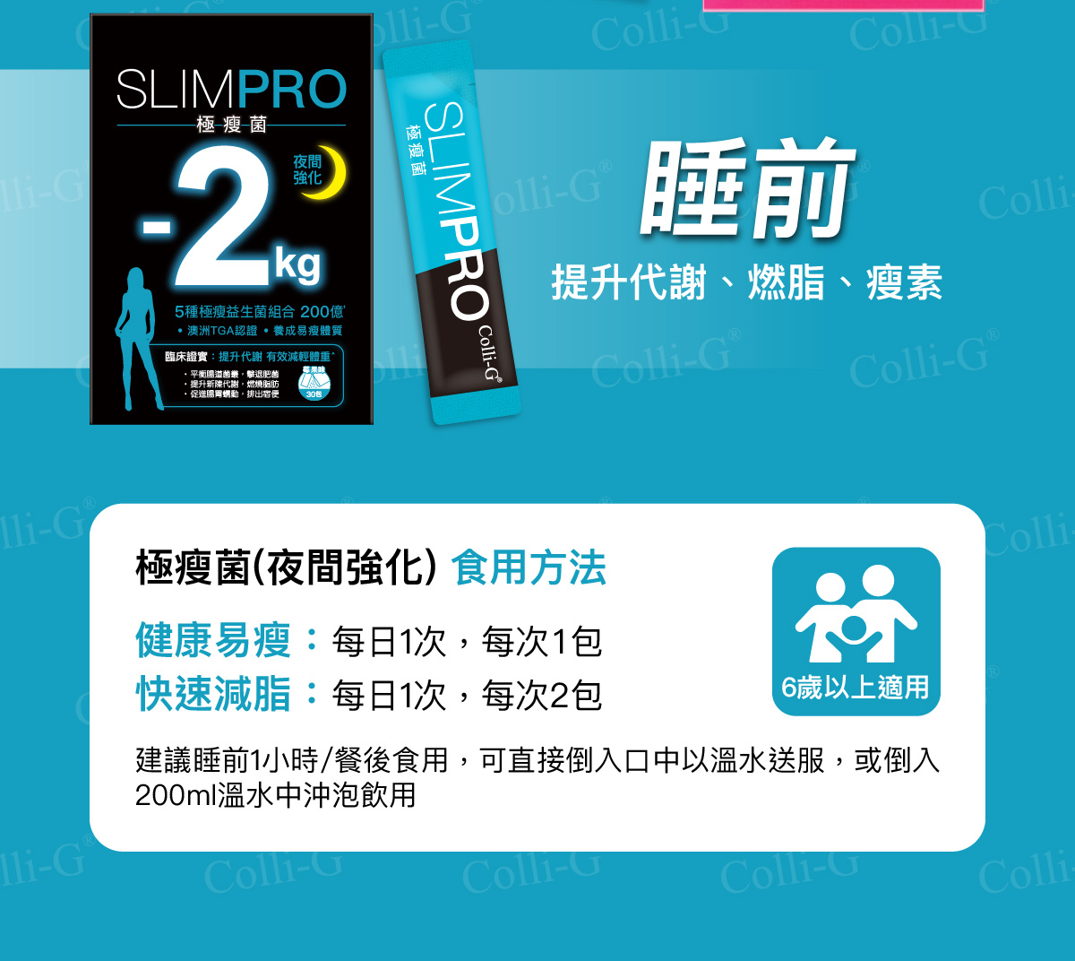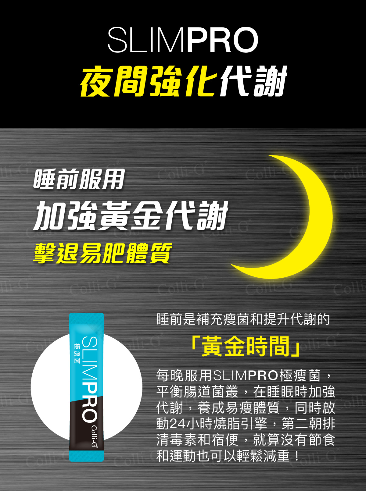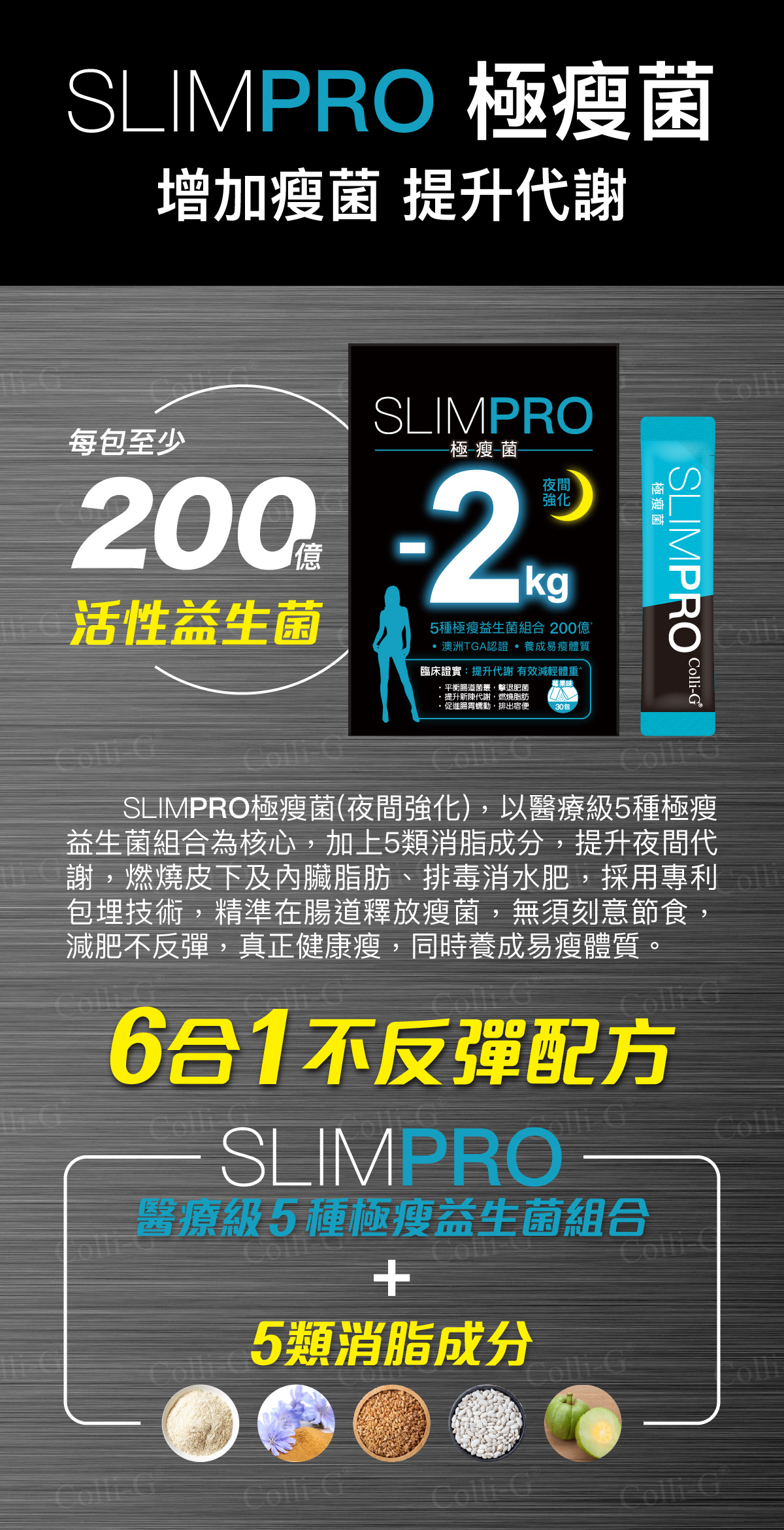 【82折】限時優惠 Colli-G SLIMPRO 極瘦菌(夜間強化) 【正品】 免運動! 28日瞓住瘦2KG!「健康瘦」