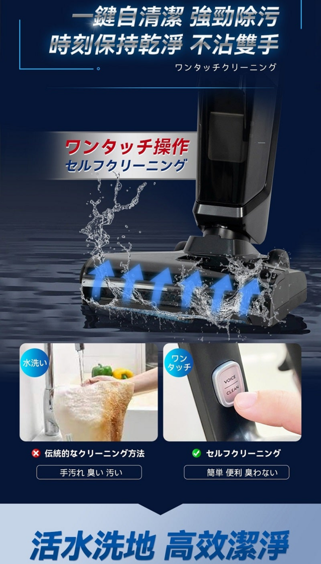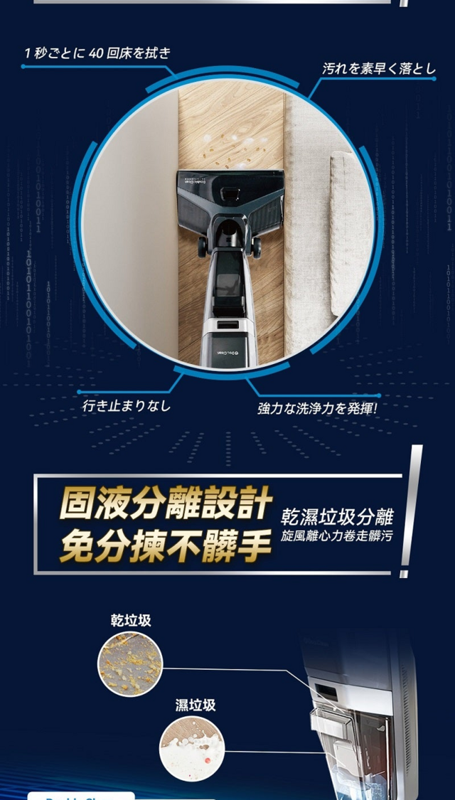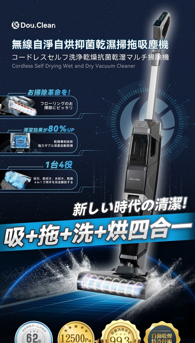 【62折】限時優惠 日本Double Clean|無線自淨自烘抑菌乾濕掃拖吸塵機