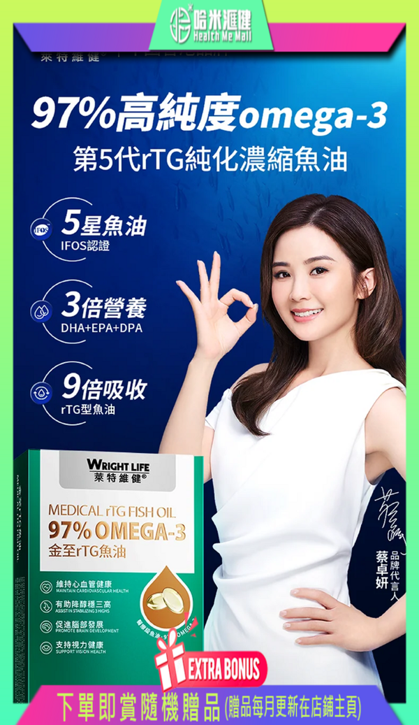 金至RTG魚油 60粒【萊特維健】WRIGHT LIFE【正品】清除血管廢物 有助降醇穩三高 改善視力 骨骼強度和強化關節