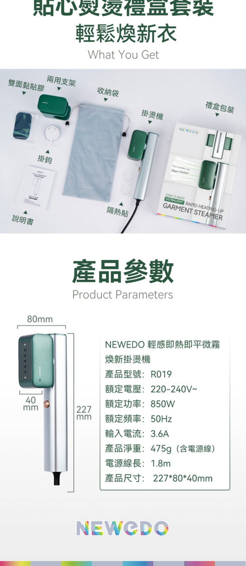 美國NEWEDO|輕感即熱即平微霧煥新掛燙機