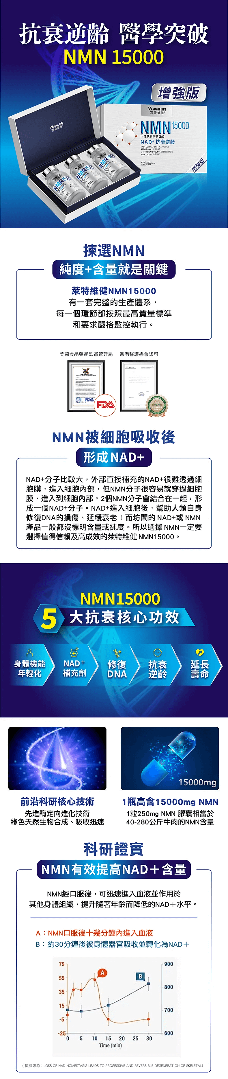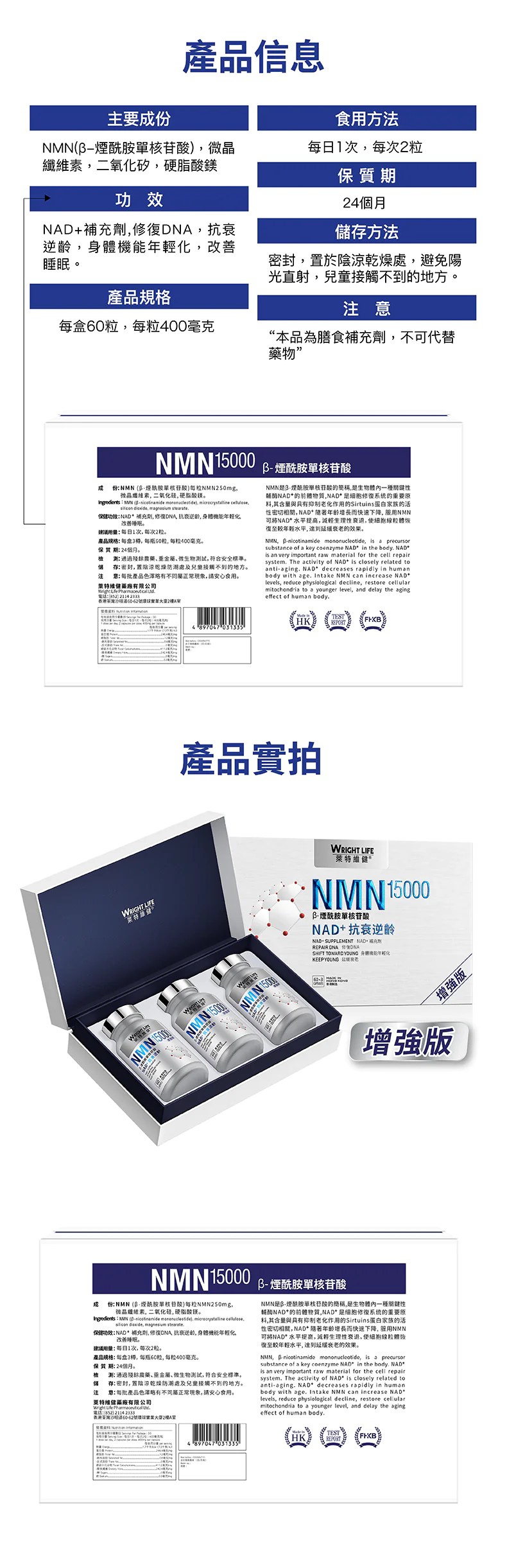 NMN15000 (單樽) 60粒x 3樽(禮盒裝)【萊特維健】NMN15000 β-煙酰胺單核苷酸 NAD+【正品】WRIGHT LIFE