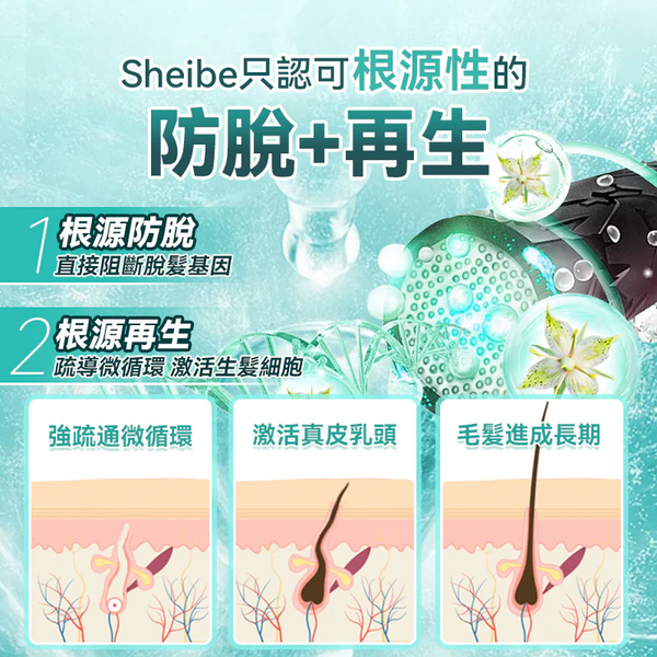 4. Sheibe黑髮寶專研配方新創,根源調理重構頭皮生態健康,深層潔淨頭皮,阻止炎症因子,全局調理頭皮微生態,配方均選用全球珍稀植萃成分,專研長銷鞏固配方,並搭配日本專利Nanobubble發生器,生成成千上萬比毛孔還細的納米微氣泡,更好促進成分的滲透及頭皮吸收,強化效果。