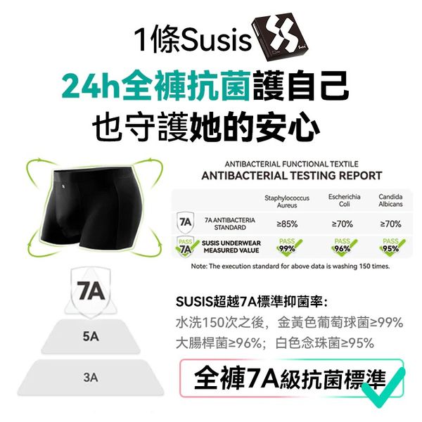 2.產品名稱:Susis 7A抗菌無感無痕透氣親膚舒適Ag+護理男士內褲