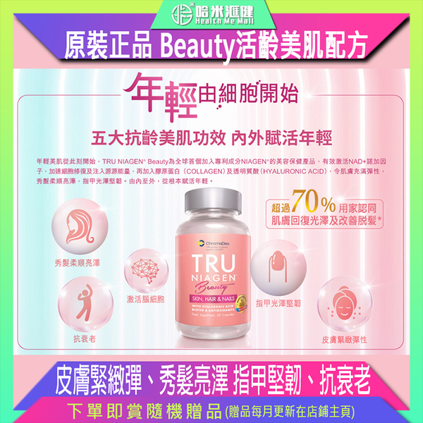 Tru Niagen樂加欣Beauty粉紅【1樽原裝正品】持續補充NAD+ 改善睡眠 皮膚緊緻彈性 秀髮柔順亮澤 指甲光澤堅韌