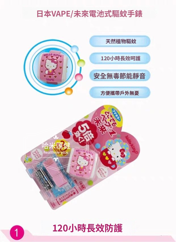 產品 : 日本🇯🇵Vape未來驅蚊手帶器+1個替換裝+1個電池 (可用20天左右) Hello Kitty 迷注意