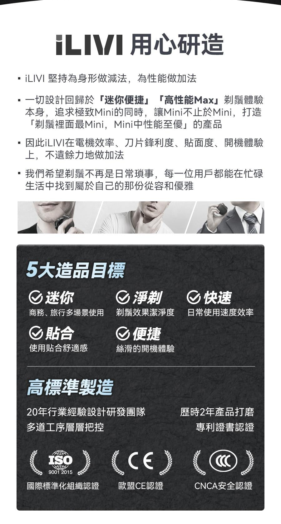 德國iLIVI Mini-Max迷你超鋒高轉速淨360°環貼感應滑控乾濕電鬚刨(黑紳士禮盒裝)【正品】0.05mm超薄弧面刀網貼合剃須更乾淨,敏感肌膚、痘痘肌膚也可舒適剃須