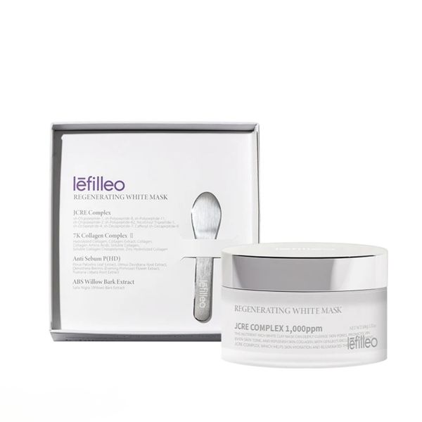 Lefilleo Regenerating White Mask(麗菲歐白晶番茄光子泥膜)。 這款營養豐富的白色泥膜可以深層清潔皮膚毛孔,促進均勻膚色,並補充皮膚膠原蛋白。