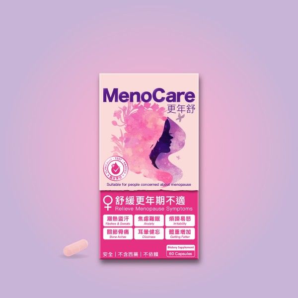Colli-G 更年舒 MenoCare 以專利 大豆胚芽異黃酮 及 多種有效成分 研製成熟齡黃金配方。臨床實證,每天服用有助舒緩潮熱、盜汗、睡眠欠佳、煩躁易怒、情緒低落、難以集中、頭目昡暈、疲倦無力、關節不適、體重增加、記憶力下降及失去興趣,幫助調理體質、舒適度過更年期。