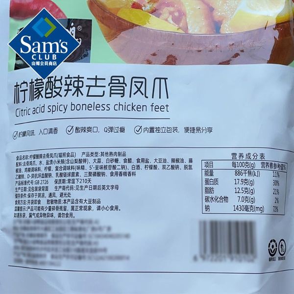 山姆小胡鸭山姆柠檬酸辣去骨凤爪山姆代購山姆正品專業代購.