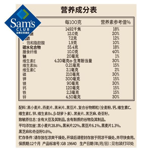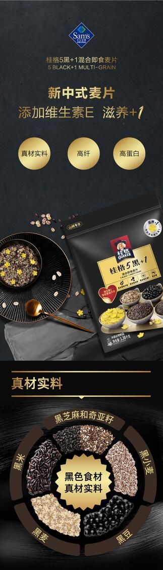 山姆正品專業代購桂格5黑1混合即食麦片1.38kg
