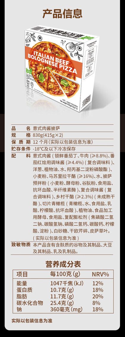 Sam's山姆 意式肉酱披萨830g(415gx2)