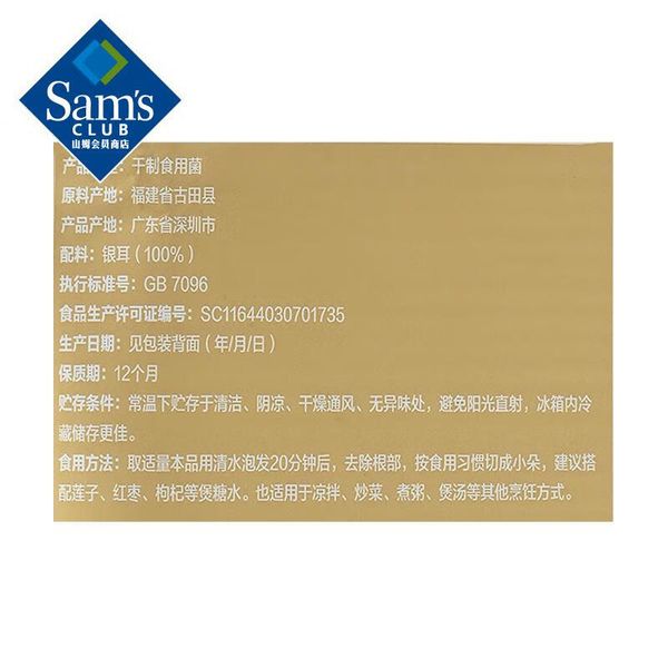 有机银耳二百五十克山姆代購專業代購正品代購山姆代購專業代購正品代購