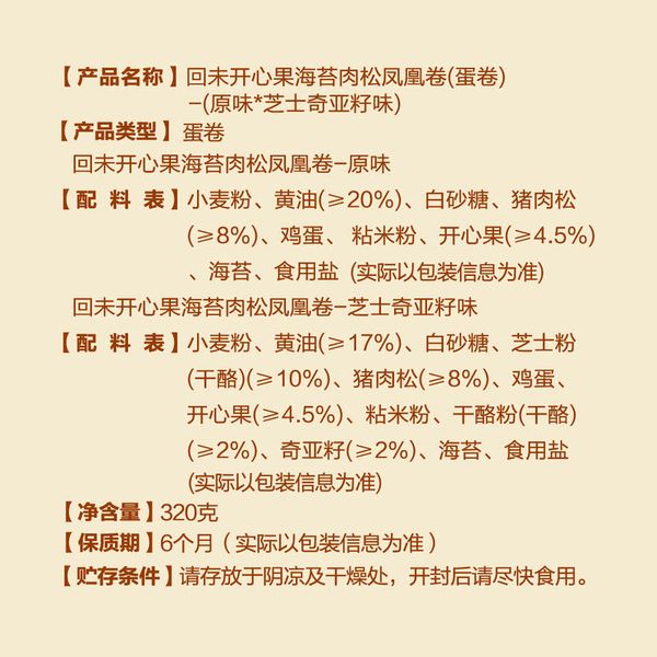 回未苔肉松凤凰卷蛋卷三百二十克山姆代購正品代購專業代購